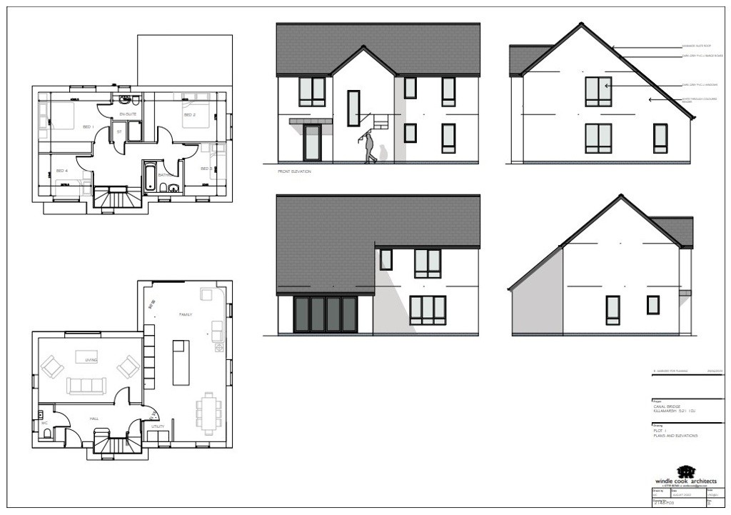 | Plot 1 - Proposed Accommodation: | Ground Floor – Entrance Hall, Lounge, Open Plan Kitchen / Dining / Living Space, Utility, W.C First Floor – Bedroom One – Ensuite, Bedroom Two, Bedroom Three, Bedroom Four, Family Bathroom |
